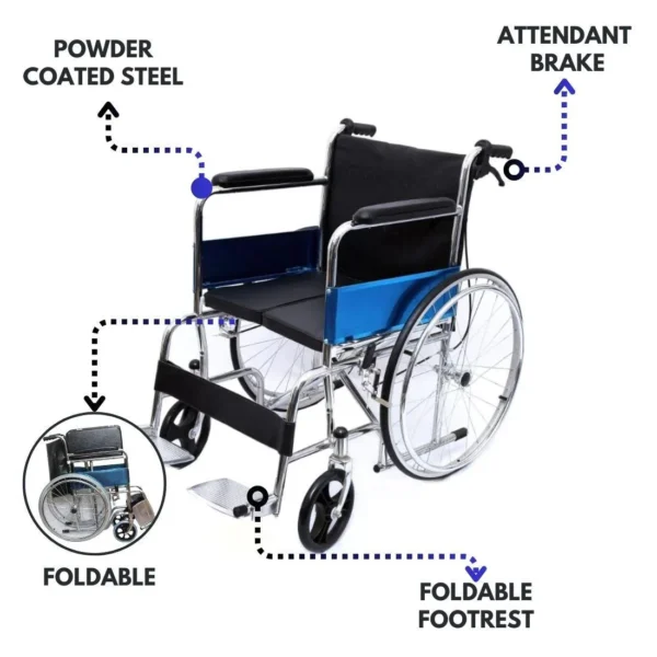 Safety First:Â Equipped with safety features, including secure brakes and sturdy wheel locks, this wheelchair prioritizes user safety. The reliable braking system ensures stability when stationary, providing peace of mind for both users and caregivers.