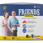 Friends Dry Pants for adults are made for patients who are mobile and need little to no assistance in wearing adult diapers. It gives you up to 8 hours of protection against leakage and moisture. Our dry pants contain world-class imported super absorbent polymer (SAP), that soaks in all the liquid, standing leak guards protect you against side trickles, an anti-bacterial core and the goodness of aloe extracts keep bacteria, rashes and infections at bay.